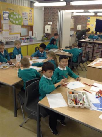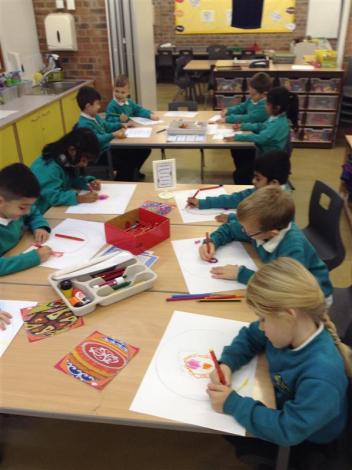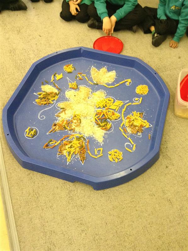 Our topic this term is celebrations. We had a Diwali day yesterday and learnt all about the celebration and why it takes place. First we started the day by reading the story of Rama and Sita. The children loved the monkey king Hanuman but didn't like the demon king Ravana! We took part in different activities including designing henna for our hands, creating Rangoli patterns using rice and pasta and making diva lamps using salt dough. Then we tried a little bit of Bollywood dancing, the children loved wearing a scarf and copying some of the actions.
